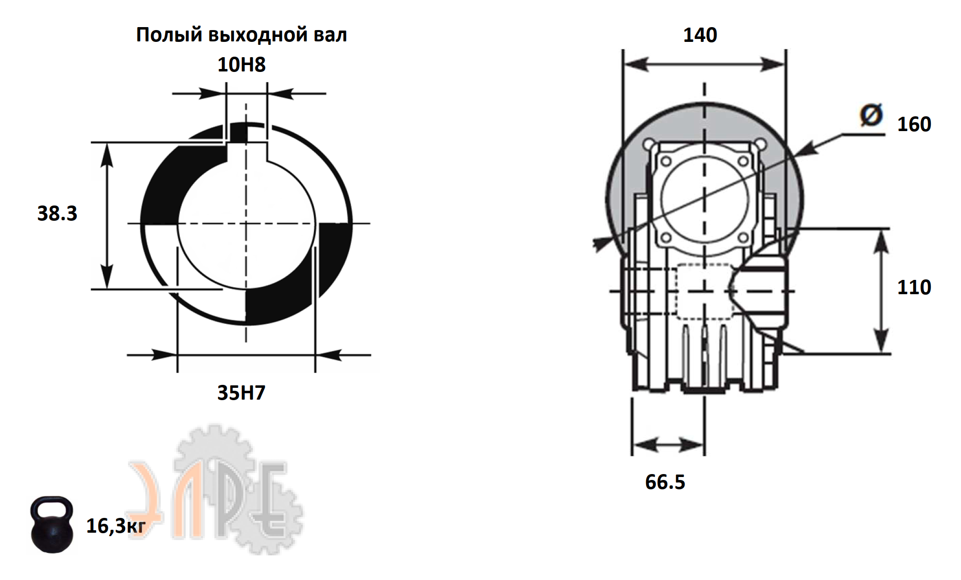 • Выходной вал: 35 мм