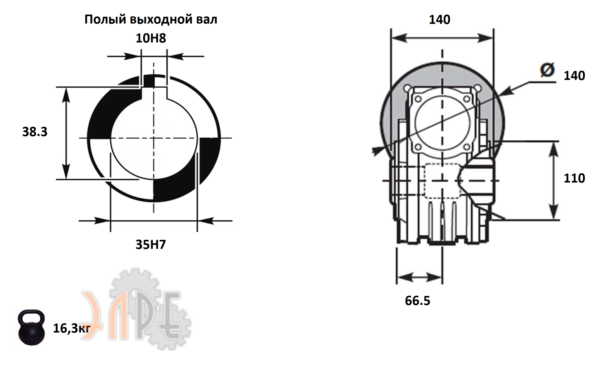 • Выходной вал: 35 мм